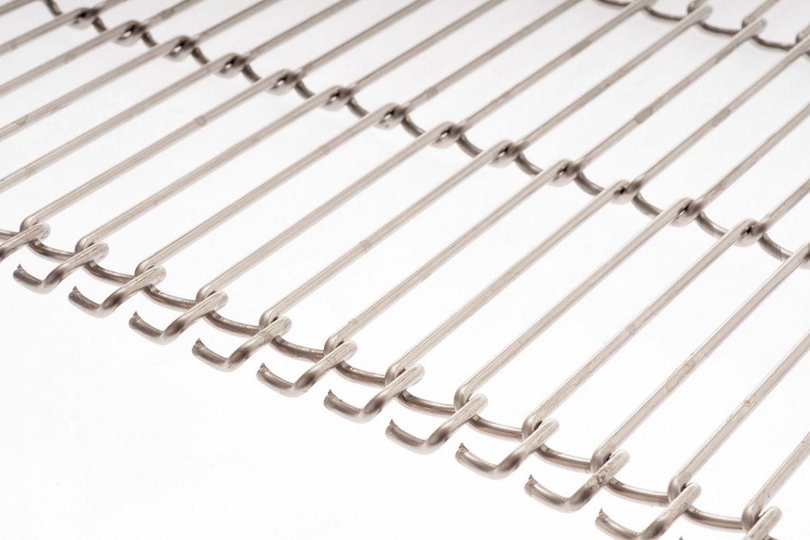 Nastri a ganci laterali costruiti con fili in acciaio ad alta resistenza opportunamente sagomati, hanno aperture larghe adatte ad applicazioni dove il prodotto dovrebbe avere il minor contatto possibile con il nastro trasportatore ed è particolarmente adatto a prodotti leggeri. Questi nastri hanno un'elevata flessibilità che consente avvolgimenti su rulli di diametro estremamente piccolo, vengono trainati da ingranaggi allestiti in diversi materiali.