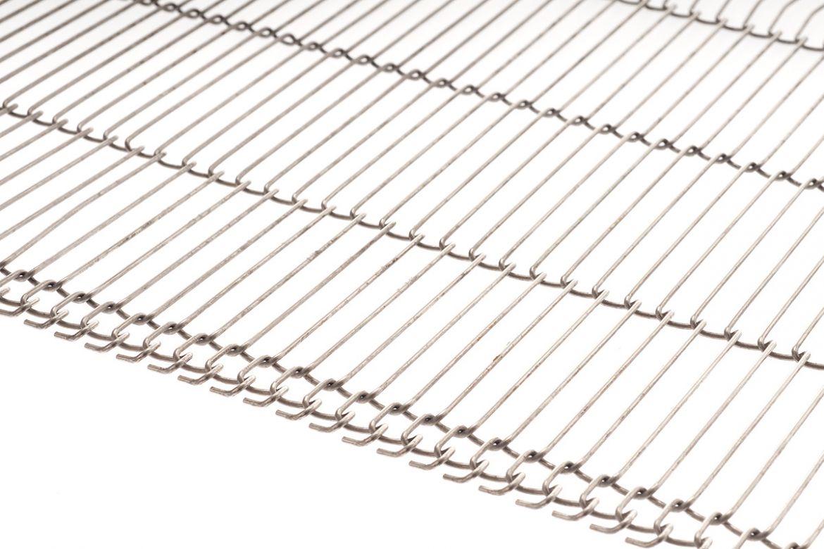 Nastri a ganci laterali costruiti con fili in acciaio ad alta resistenza opportunamente sagomati, hanno aperture larghe adatte ad applicazioni dove il prodotto dovrebbe avere il minor contatto possibile con il nastro trasportatore ed è particolarmente adatto a prodotti leggeri. Questi nastri hanno un'elevata flessibilità che consente avvolgimenti su rulli di diametro estremamente piccolo, vengono trainati da ingranaggi allestiti in diversi materiali.