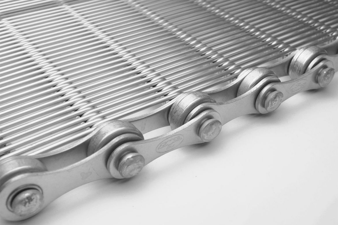 Nastro solido e duraturo, costituito da graffette collegate mediante barrette, può essere anche allestito interponendo tra le graffette dei distanziatori. Per rispondere a specifiche esigenze dei nostri clienti lateralmente possiamo applicare sia catene di traino a rulli che spondine. Facilità di manutenzione grazie alla struttura modulare, vengono normalmente utilizzate ruote dentate per la movimentazione.